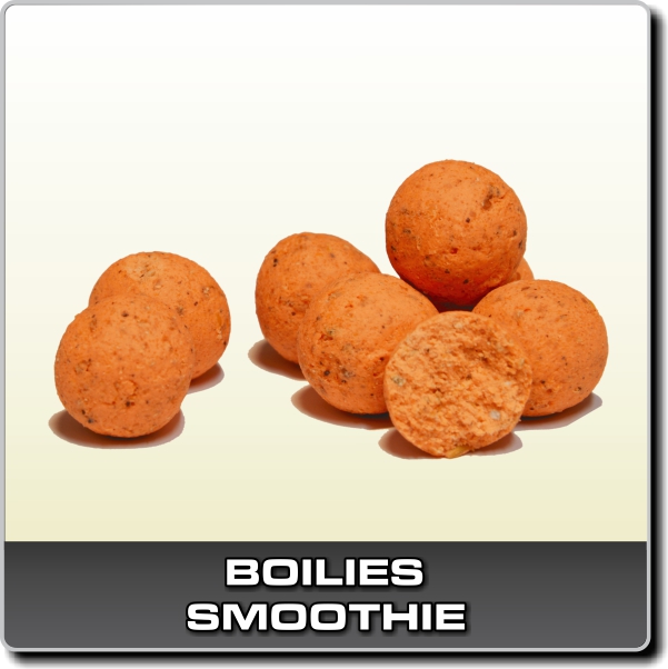 Boilies Smoothie je výrazně oranžovou nástrahou se sladkou vůní ananasu a ostrou chutí chilli. Toto boilies bylo pečlivě vyvinuto pro úspěšný lov kaprů a je vhodné k rychlému, ale i dlouhodobému lovu. Obsahuje tepelně upravené rostlinné moučky, extrudované ptačí zoby, mléčné proteiny, olihňovo-játrový protein, chilli extrakt, sladidlo NHDC a chuťové stimulátory.
