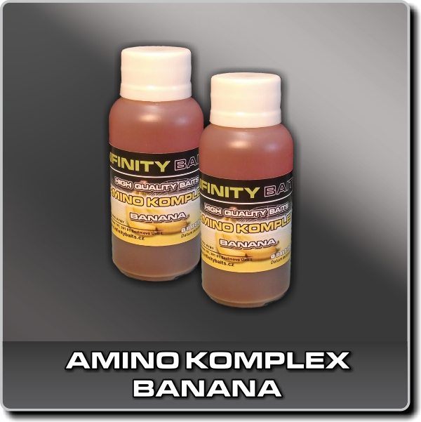 Amino komplex je vysoce koncentrovaný tekutý doplněk určený pro zvýšení atraktivity rybářských nástrah i krmení. Banana je amino komplex, který kombinuje ovocnou esenci s ostrou chutí chilli a sladidla NHDC. Tento aminokomplex byl vyvinut k rolování boilies z mixu Banana. Tento aminokomplex je složen z prvotřídních surovin, tak aby boilies dobře fungovalo i v nejstudenější vodě.Obsahuje směs aminokyselin, tekutých potrav a atraktorů, které vytvářejí silný potravní signál a podporují aktivní příjem potravy u kaprů i dalších kaprovitých ryb. Při vývoji jsme se zaměřili na celkovou vyváženost výsledného boilies, jak po stránce nutriční tak i chuťové. Výslednicí je pak kombinace aminokomplexu a příslušného boilies mixu.