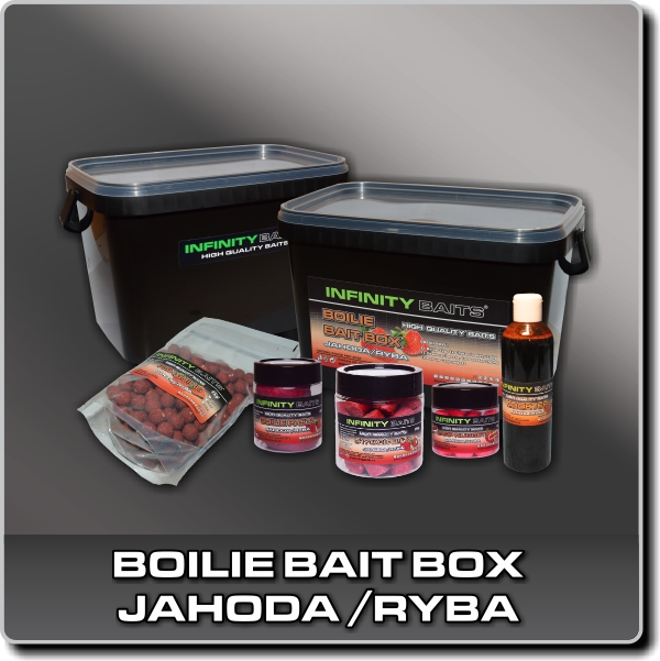 Boilie bait box Jahoda/ryba – kompletní ovocno-masová výbava pro úspěšný lov v jednom balení.