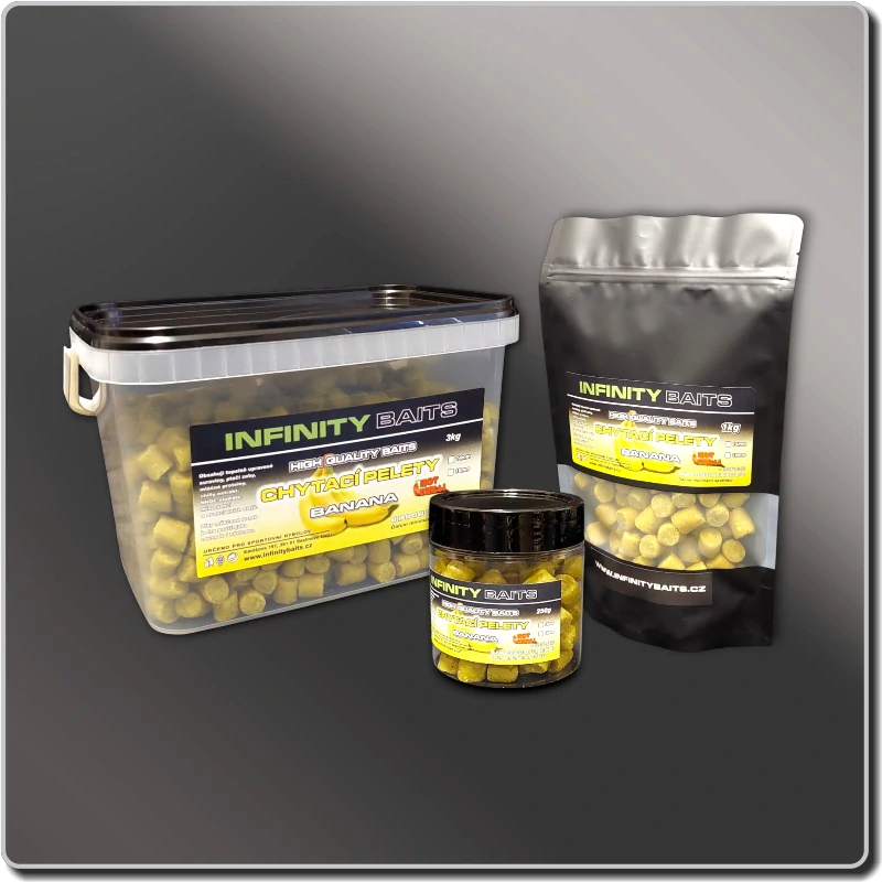 Měkčené chytací pelety na kapry jsou vysoce atraktivní nástrahou určenou pro lov kaprů i dalších kaprovitých ryb. Banana jsou měkčené pelety sladké ovocné vůně i chuti. Tyto pelety jsou vhodné pro celoroční rybolov, jak na stojatých, tak tekoucích vodách. Vynikajících výsledků jsme dosáhli, zejména na jaře, při kombinaci se stejnojmenným Obalovacím těstem. Díky své měkčené struktuře se velmi snadno nastražují a rychle uvolňují pachové a chuťové látky, které přitahují ryby z širšího okolí. Tyto pelety jsou velice atraktivní návnadou, ale díky své měkčené hrubší struktuře především nástrahou, která je velice efektivní při krátkých vycházkách.